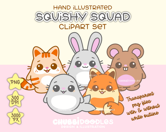 Squishy Squad Illustrations - Cute Animals PNG Clipart Stickers DTF Sublimation