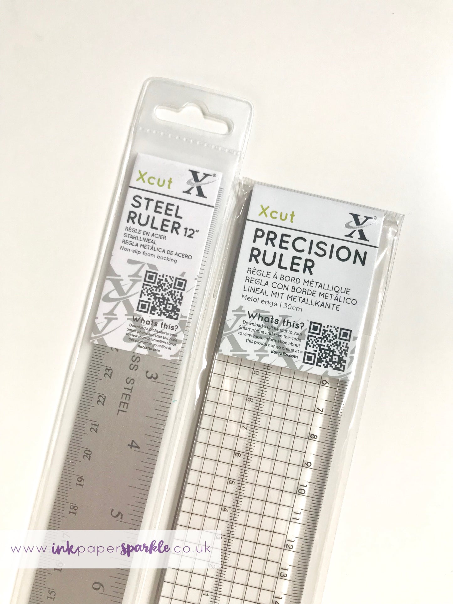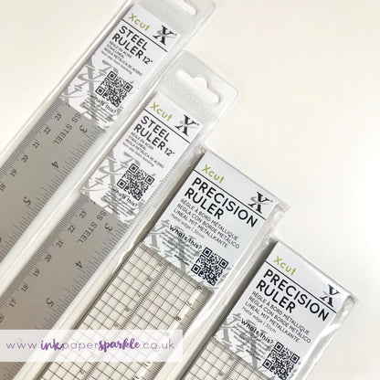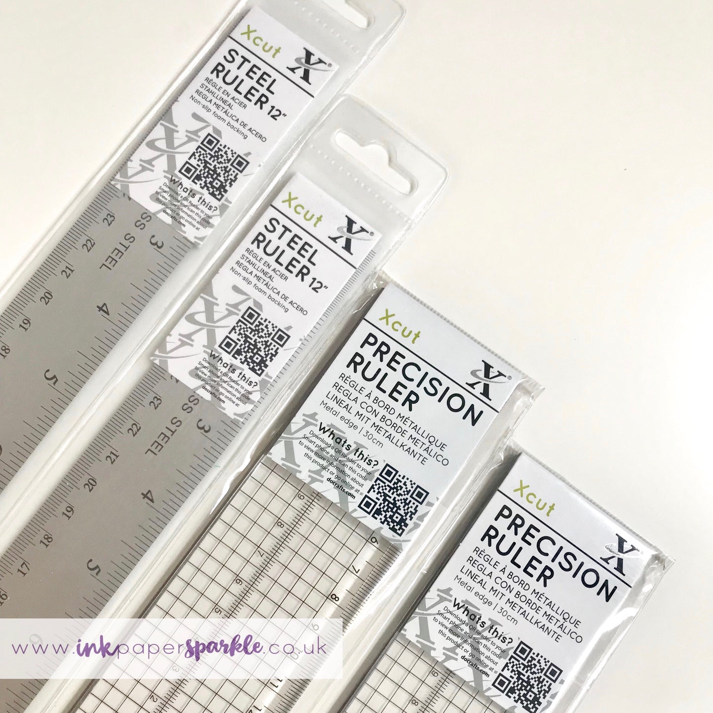 30cm precision ruler - transparent with grid to help you get it in just the right place. Metal strip edge for use with knives/rotary cutters.