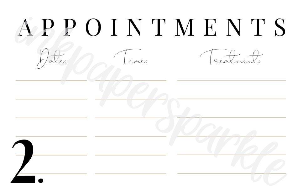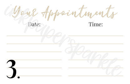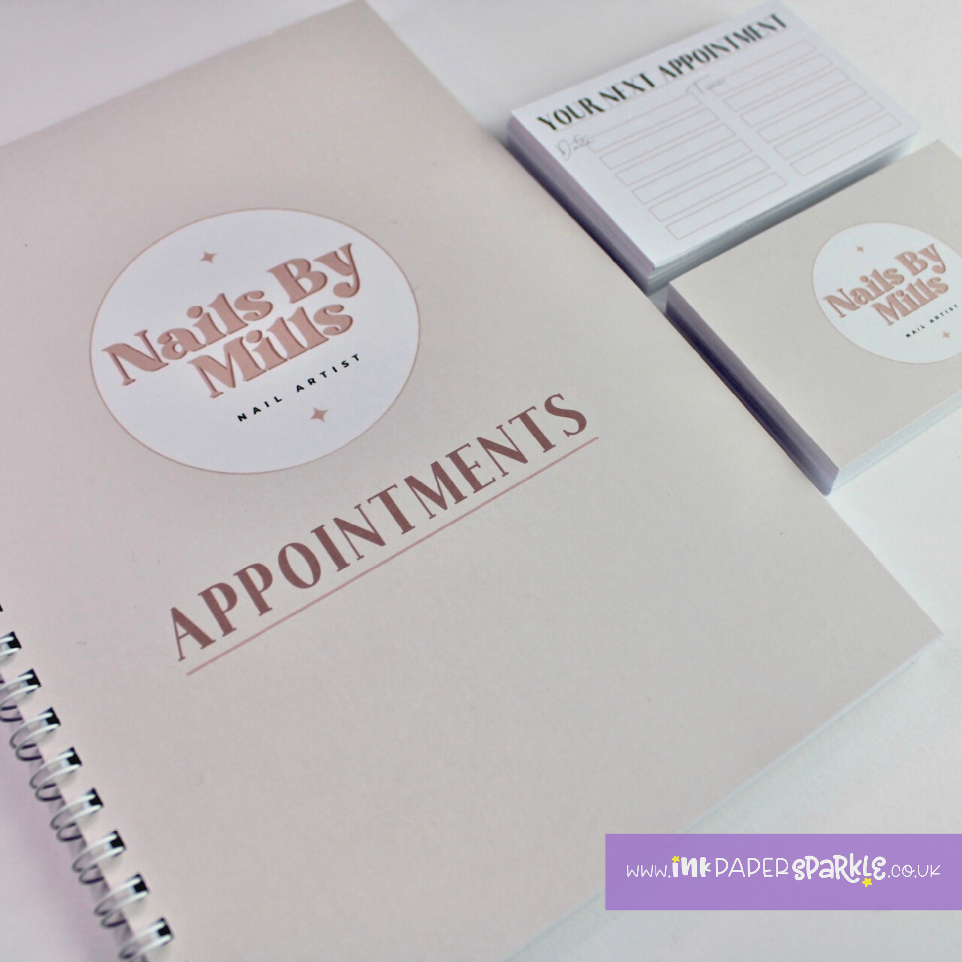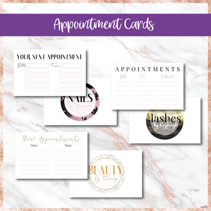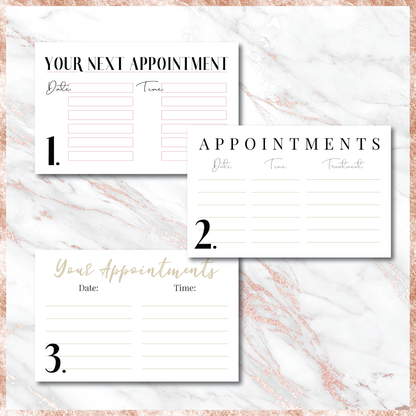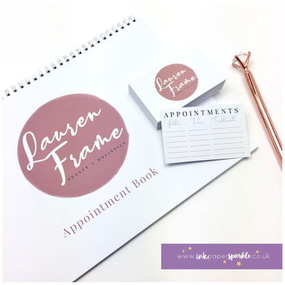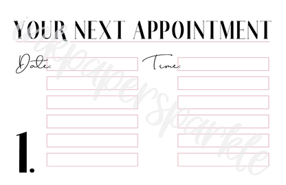 There are 3 set designs to choose from. You can have them printed single sided with just the appointment section (blank back), or you can have appointments on one side and your logo printed on the reverse.
