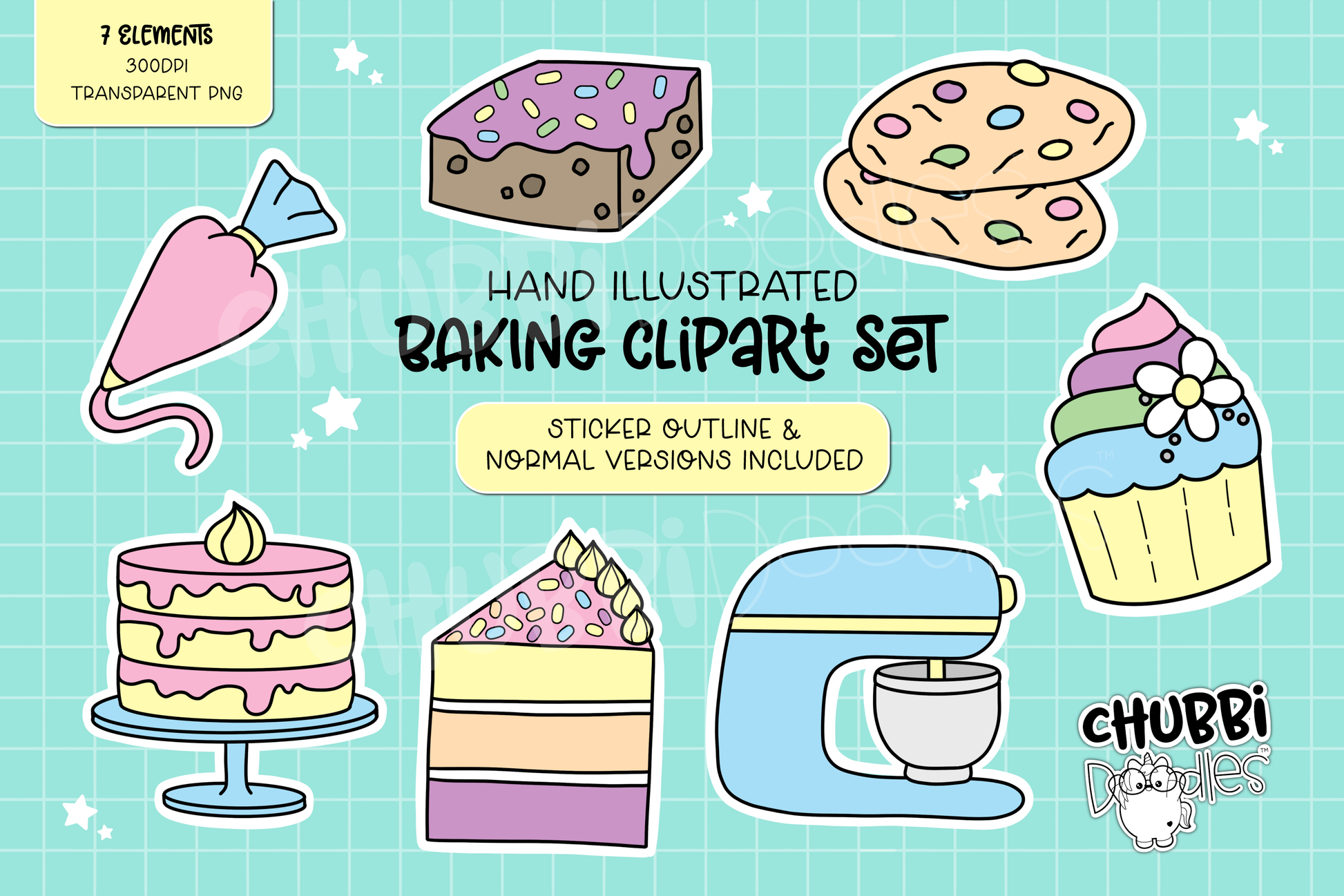 This baking image collection features 7 hand drawn sweet elements - with and without the white sticker outline.