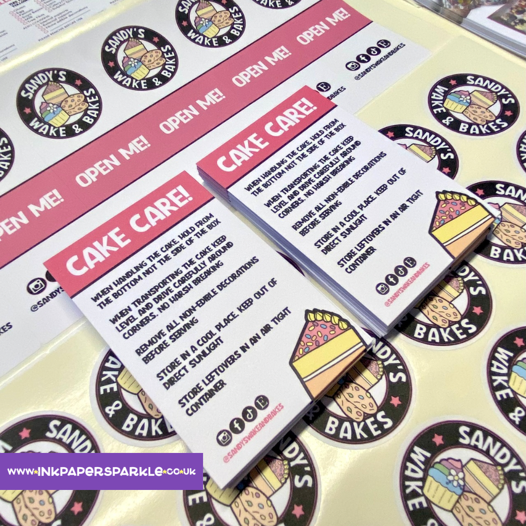 If you already have a ready to print cake care card design, simply choose the reprint option. Please ensure the dimensions of your design will fit the cards, preferably with a few mm bleed.
