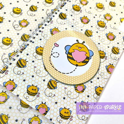 A5 lined notebook covered in cute ChubbiBumble Bees!