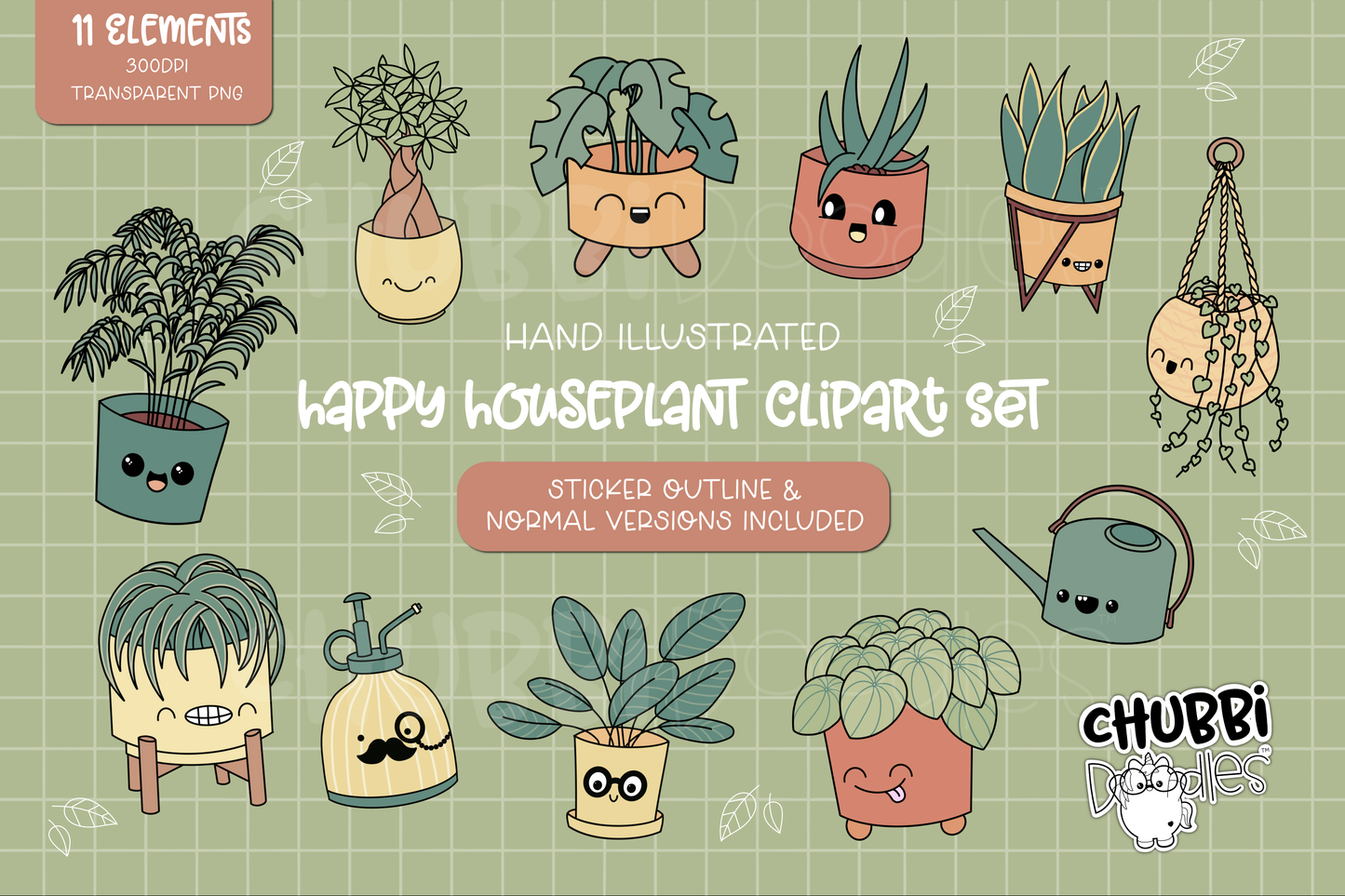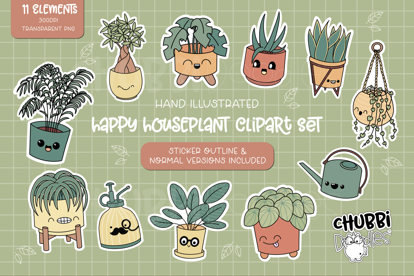 Happy Houseplant Clipart Set - Stickers - PNG Kawaii Plants