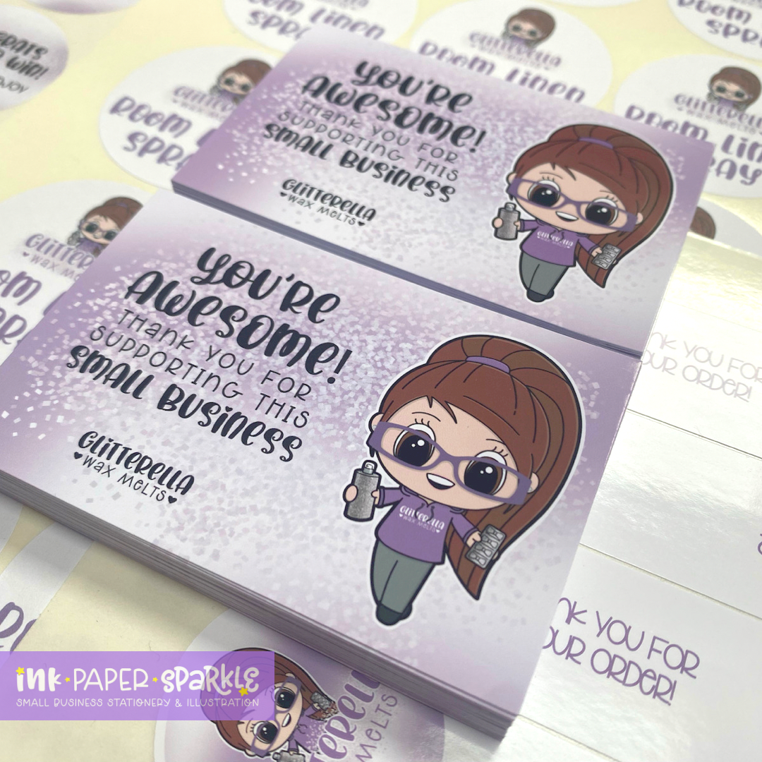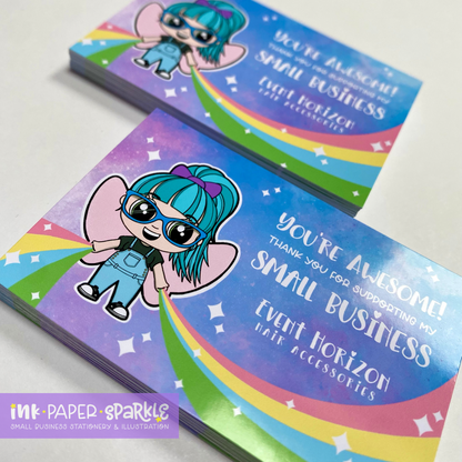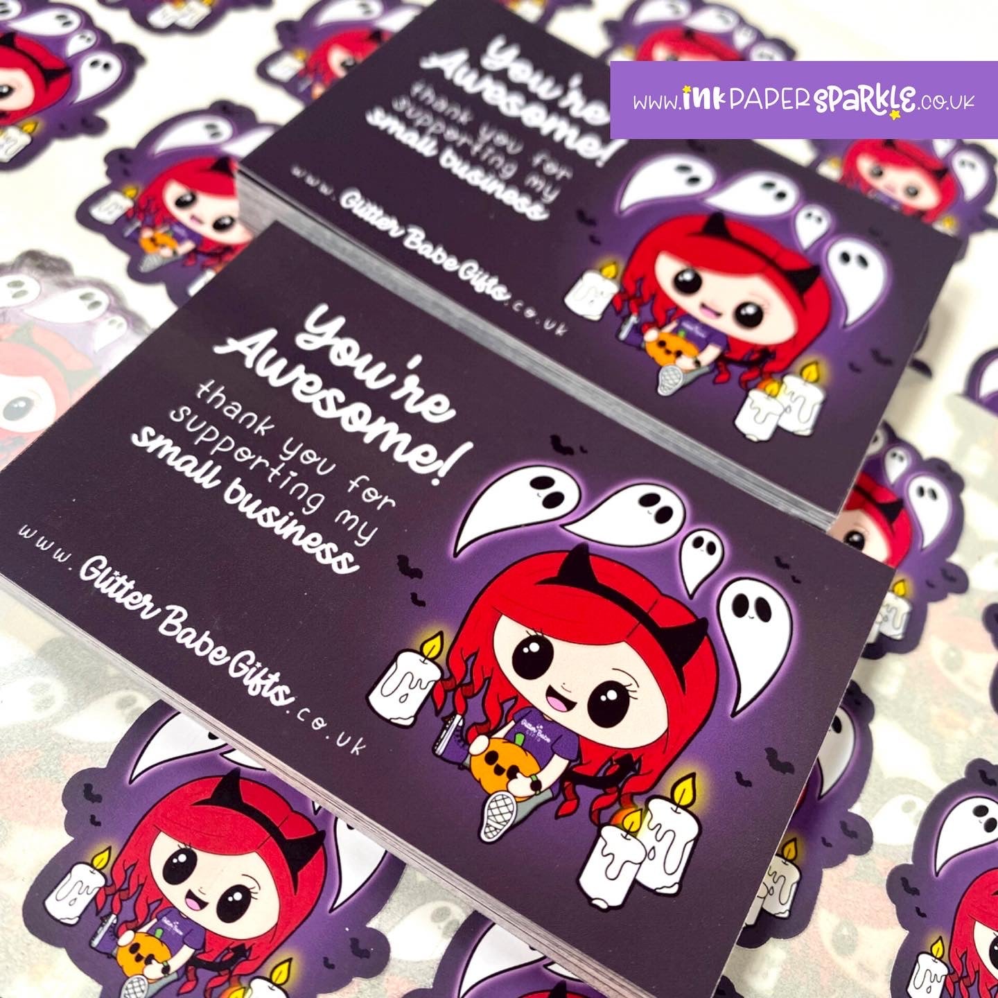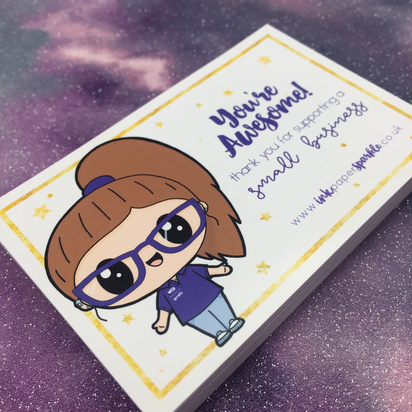 Cards are approx 85mm x 55mm and are printed on glossy 260gsm card.
