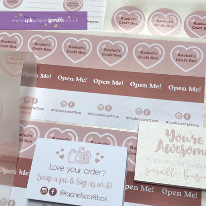 Please email your logo (or other print ready artwork) to amy@inkpapersparkle.co.uk if I don't already have it.